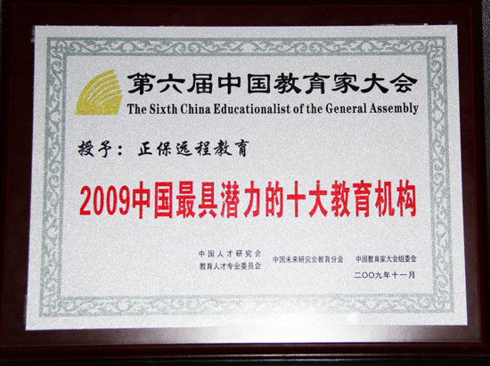 正保远程教育获“2009中国最具潜力的十大教育机构” 正保教育摄