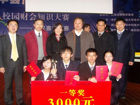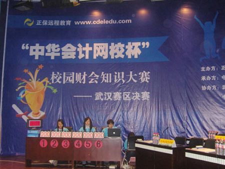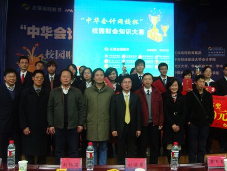 2008年12月7日,“正保会计网校杯”校园财会知识大赛武汉赛区决赛在中南财经政法大学文泉楼报告厅隆重举行。正保远程教育企业管理部总裁刘温泉先生、中南财经政法大学学工部黄书春副部长、中南财经政法大学校团委王前哨书记、中南财经政法大学会计学院副院长张敦力教授、武汉大学经济与管理学院会计学系李青原博士、中南财经政法大学会计学院党委副书记张学平老师及分团委书记刘筱彤老师等领导嘉宾出席了此次比赛。